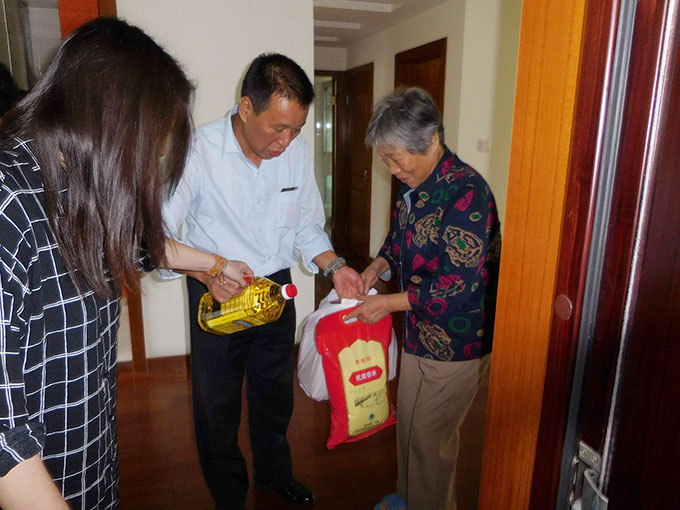 逸仙華庭管理部慰問社區(qū)孤老和壽星