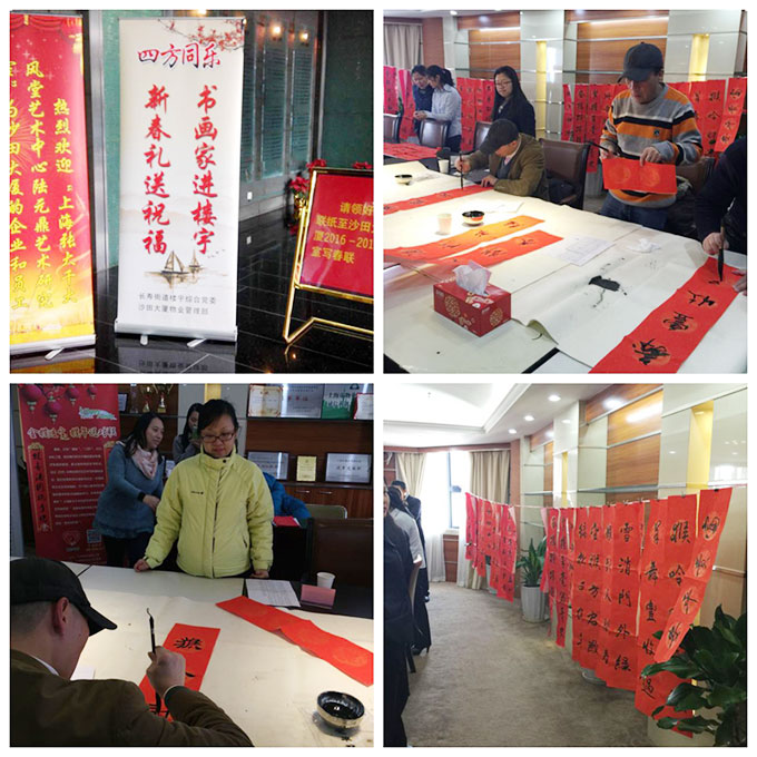 貼春聯(lián)是中華名族一直延續(xù)的老傳統(tǒng),象征吉祥。2016年2月1日,長壽路街道黨工委、長壽路街道社區(qū)黨委的組織下,長壽幸福港攜手上海張大千大風(fēng)堂藝術(shù)中心的書法家們來到沙田大廈,為沙田大廈企業(yè)和白領(lǐng)們寫春聯(lián)送祝福。