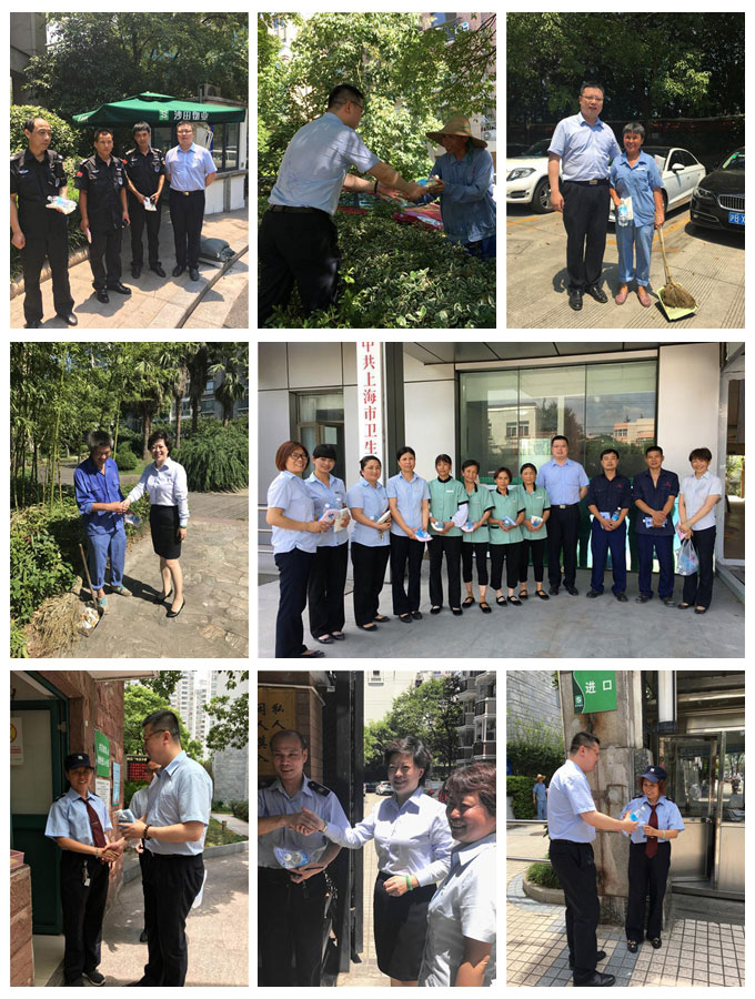 酷暑盛夏,驕陽似火。連日來,我市持續(xù)高溫,炎熱天氣給我們物業(yè)一線工作人員帶來了嚴峻考驗。7月17日一早,總經(jīng)理趙小鳳女士帶領(lǐng)黨政工團領(lǐng)導開啟了為期一周下基層,走訪一線的高溫慰問活動,給各個項目的員工們送去清涼,向廣大高溫下堅守崗位的一線職工表示慰問和感謝。公司領(lǐng)導向每位在崗的員工一一致敬,叮囑大家天氣炎熱,一定要注意防暑降溫,保重好身體。趙總還要求各個項目經(jīng)理要關(guān)心好每位員工,及時為他們發(fā)放夏季消暑用品,為一線工作者創(chuàng)造更好的工作和休憩環(huán)境。烈日灼烤著大地,也在考驗著我們?yōu)闃I(yè)主服務(wù)的一顆誠摯的心。在為員工做好防暑降溫工作的同時,更要為業(yè)主營造一個安全,整潔、舒適的生活環(huán)境而努力。