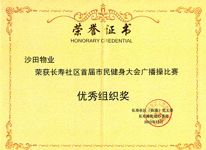 長(zhǎng)壽社區(qū)首屆市民健身大會(huì)廣播操比賽優(yōu)秀組織單位