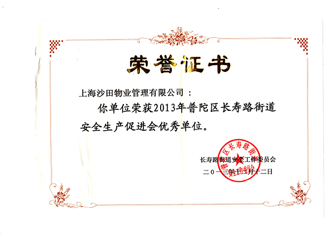 2013年普陀區(qū)長壽路街道安全生產(chǎn)促進(jìn)會(huì)優(yōu)秀單位