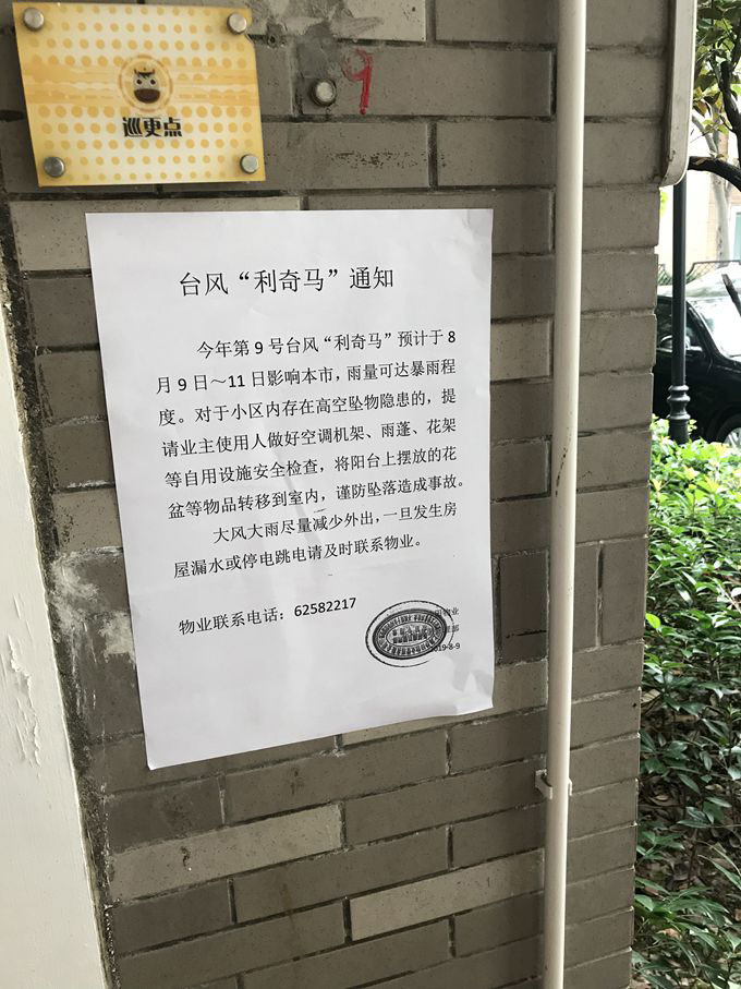 8月9日,超強(qiáng)臺(tái)風(fēng)“利奇馬”逼近上海,全市大部分地區(qū)出現(xiàn)了中到大雨。17級(jí)臺(tái)風(fēng)的路徑、動(dòng)態(tài),牽動(dòng)著每個(gè)上海市民的心,更牽動(dòng)著每位物業(yè)人的心。我們通過(guò)“精細(xì)化”排查、巡檢,備足備全抗臺(tái)物資,加強(qiáng)值班值守,全員應(yīng)對(duì)一切突發(fā)狀況!