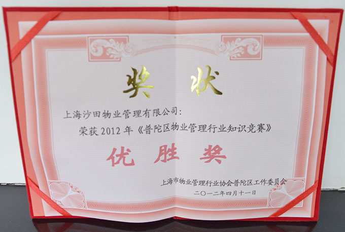 2012年普陀區(qū)物業(yè)管理行業(yè)知識競賽獎狀